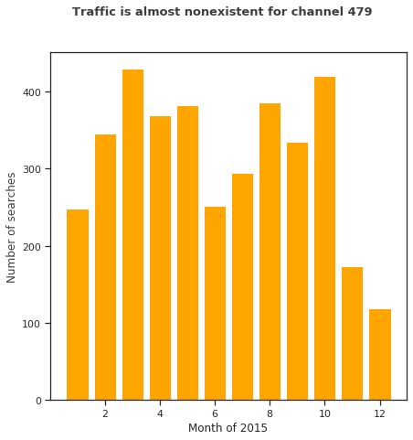 Channels 386 and 479, on the other hand, are certainly not as active now (or anymore), and from the bar chart of total traffic, we can see that they leave a lot to be desired in terms of generating traffic compared to the other avenues.